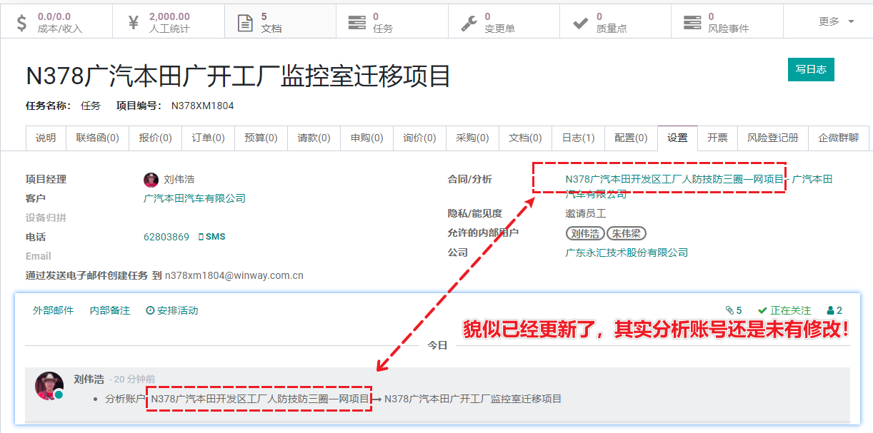 要分析账号同步修改,否则财务数据就还是沿用旧的项目名称